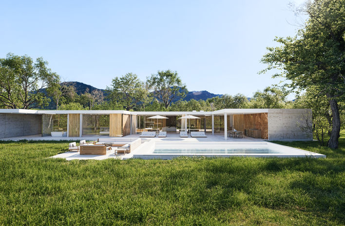 Led by Merissa Periana, the design challenges the limits of structure and transparency. The project explores how architectural ideas once considered too idealized or structurally impractical can now be realized through advanced materials, digital modeling, and precise engineering. The result is a home that feels simultaneously weightless and grounded — a contemporary villa that captures the essence of Miesian clarity while responding to today’s context of sustainability, performance, and craft.
